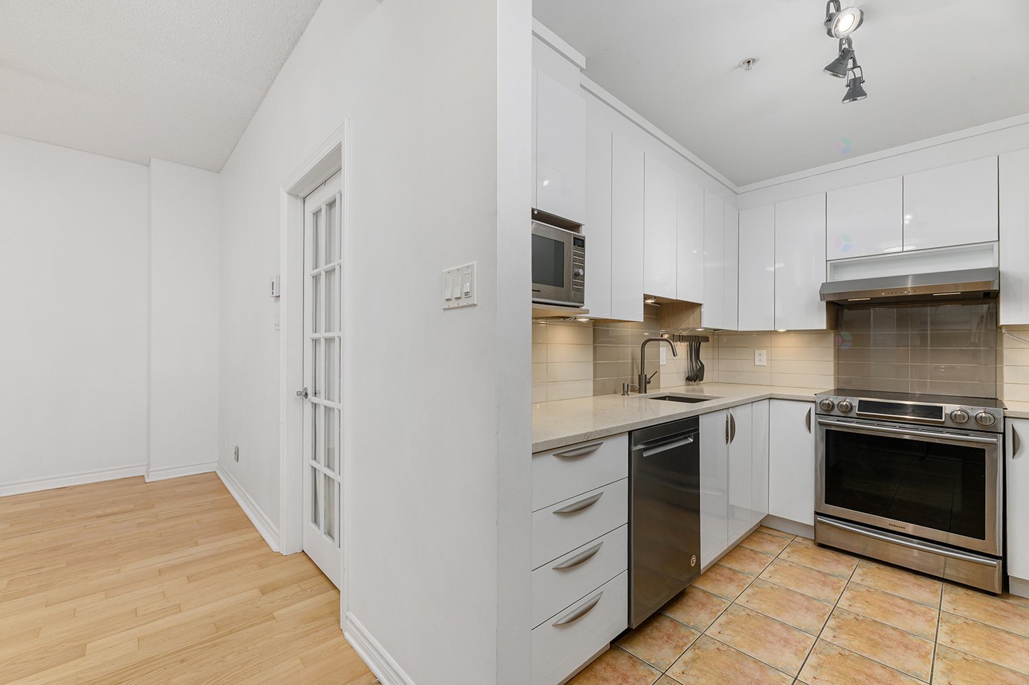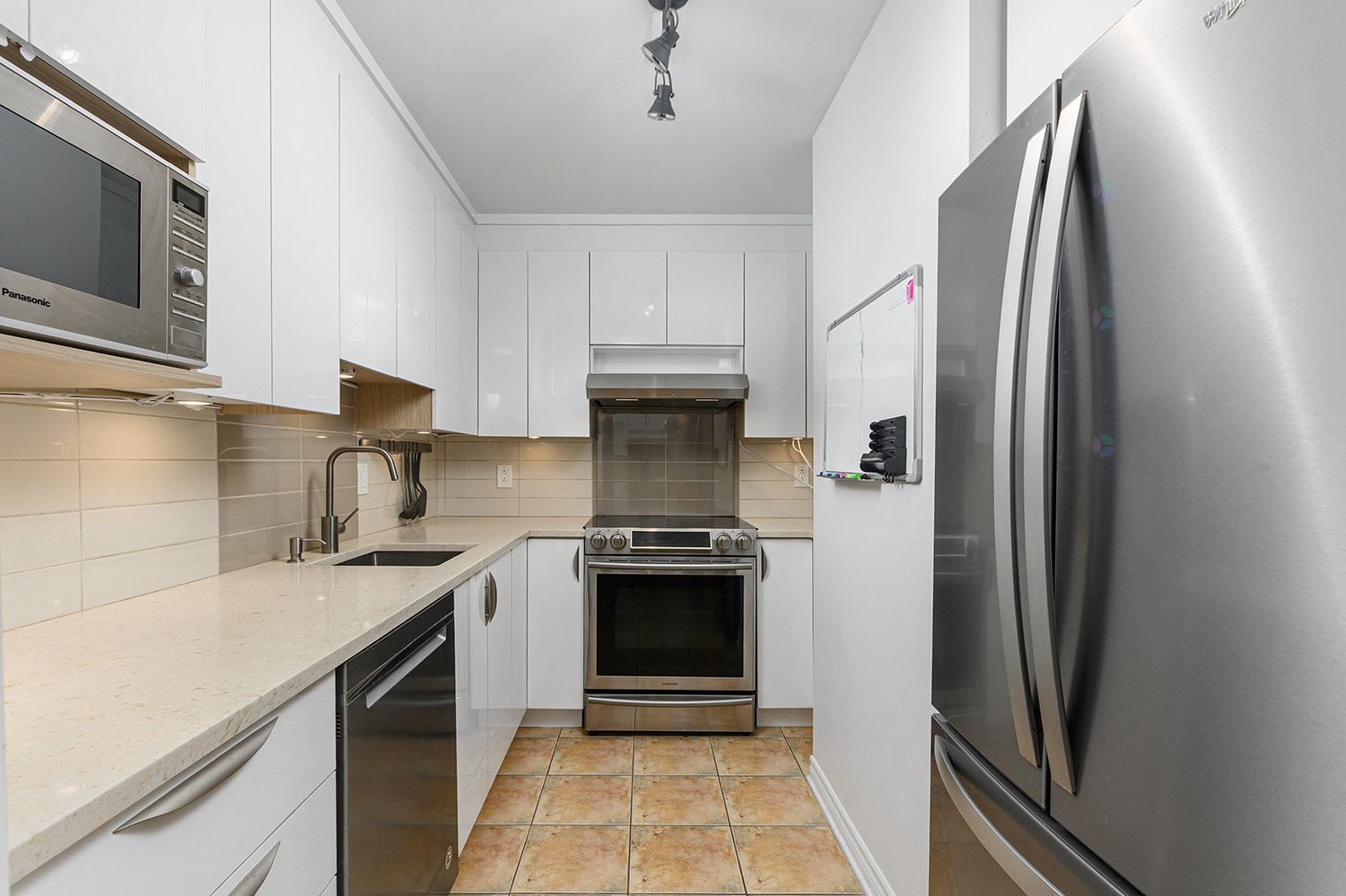 Lave-vaisselle Samsung, Réfrigérateur Whirlpool, Micro-onde Panasonic, laveuse-sécheuse LG, Cuisinière Samsung, luminaires, unité d'air climatisé et chauffage mural, aspirateur central et accessoires