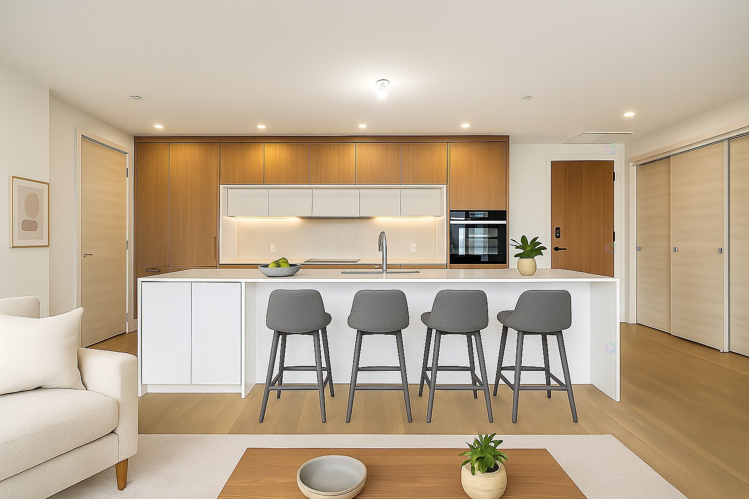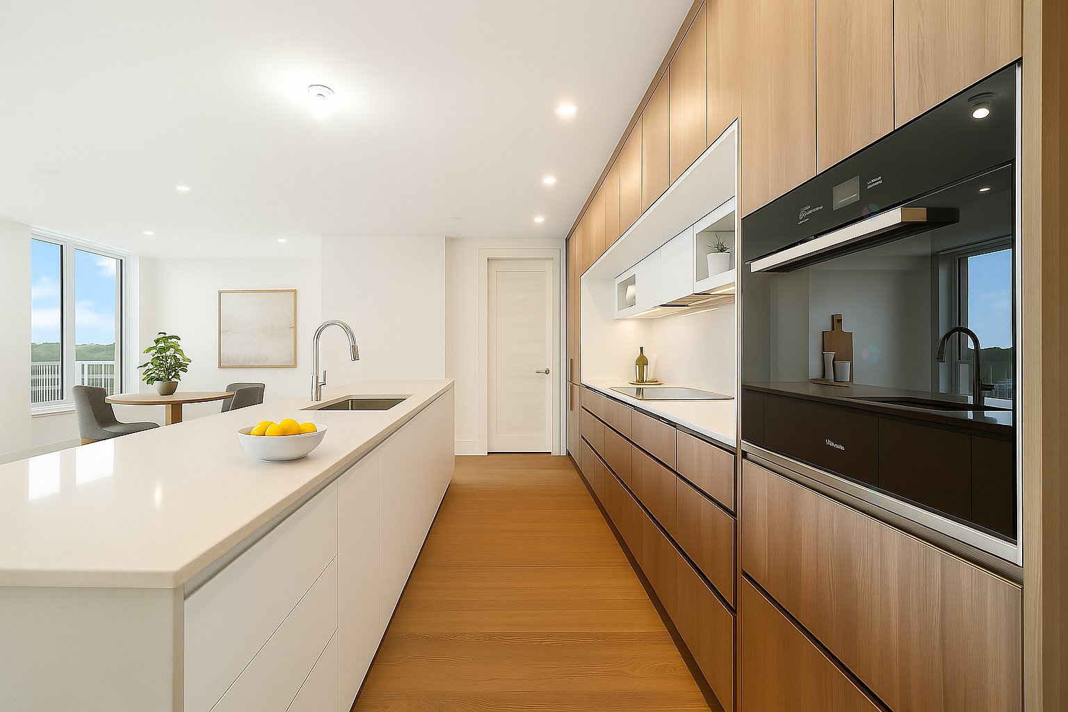 La cuisine haut de gamme séduit par ses électroménagers Miele intégrés, ses finitions impeccables et son superbe comptoir en quartz avec dosseret cascade. De grandes fenêtres pleine hauteur maximisent la lumière naturelle, tandis qu'un immense balcon privé de 298 pi² vous offre une vue imprenable sur le lac Saint-Louis -- un véritable écrin de sérénité pour profiter de moments d'exception ou accueillir avec raffinement.