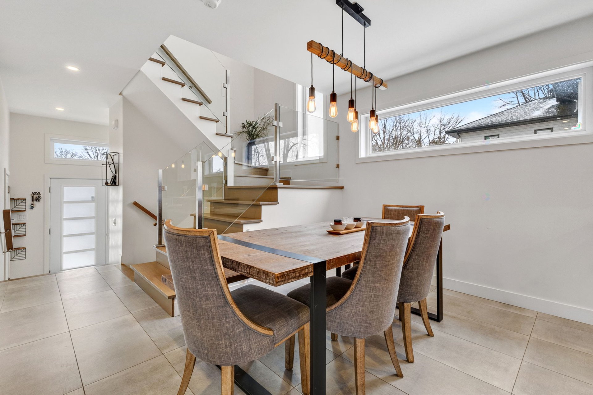 Dès l'entrée, vous serez charmé par le hall d'entrée séparé menant à un magnifique espace de vie à aire ouverte. Le salon, la salle à manger et la cuisine s'harmonisent parfaitement. Une salle d'eau pratique complète le rez-de-chaussée, tandis qu'une thermopompe murale et des plancher chauffant assure un confort optimal tout au long de l'année.